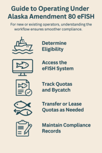Participation in Alaska Amendment 80 Efish requires strict adherence to reporting, quota use, and monitoring rules.